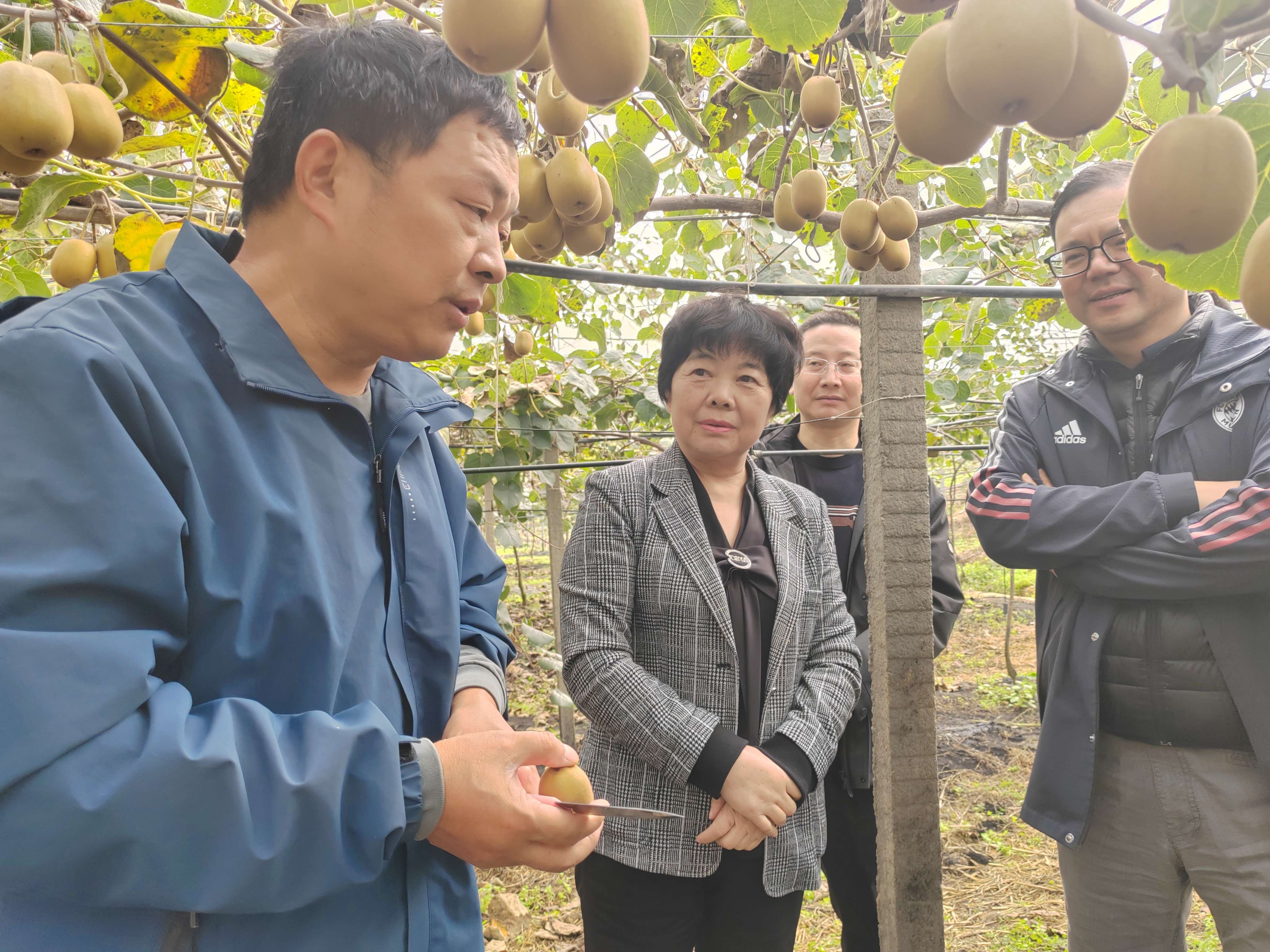 在永宁镇金兰园区,专家团队走进田间地头,与园区负责人进行交流,详细了解红心猕猴桃品种选育、标准化种植、病虫害防治,以及销售等情况。专家团队还在挂果区仔细观察果皮色泽、果形规整度等情况。