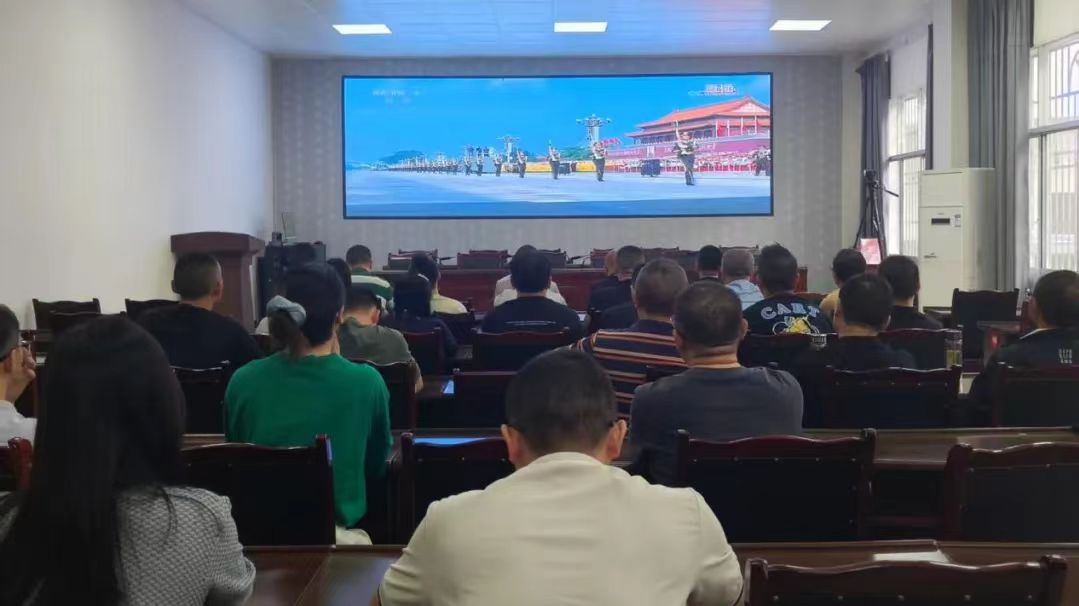 龙山镇集中观看纪念中国人民抗日战争暨世界反法西斯战争胜利80周年大会实况直播。