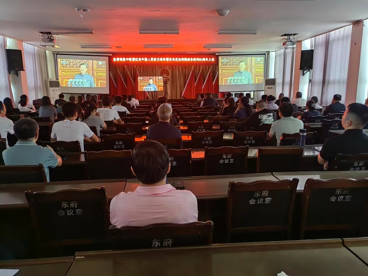 东青镇集中观看纪念中国人民抗日战争暨世界反法西斯战争胜利80周年大会实况直播。