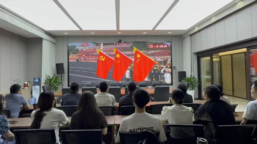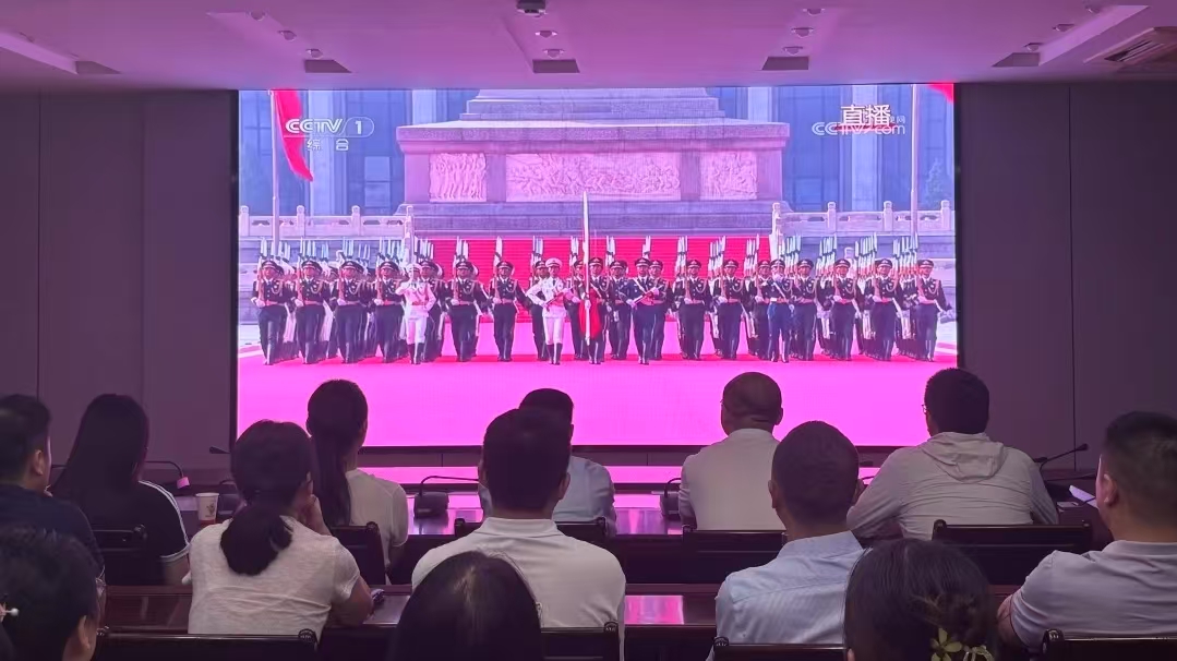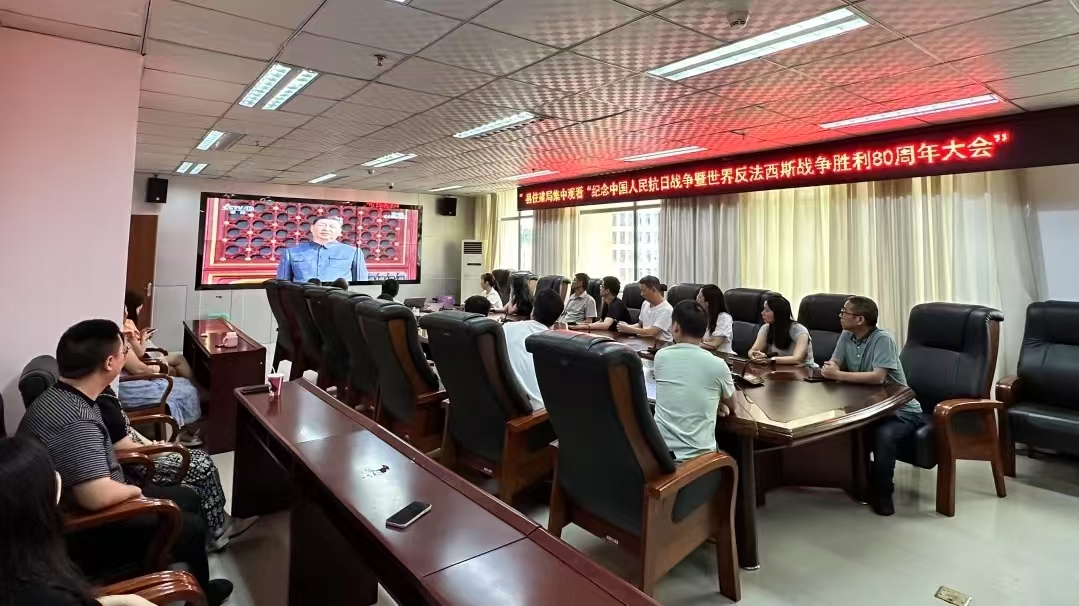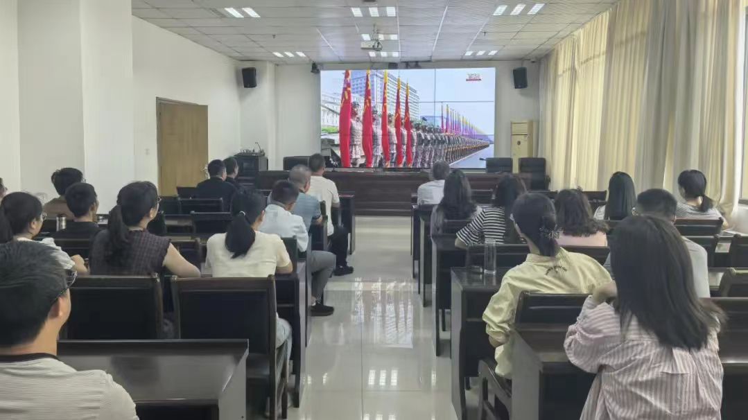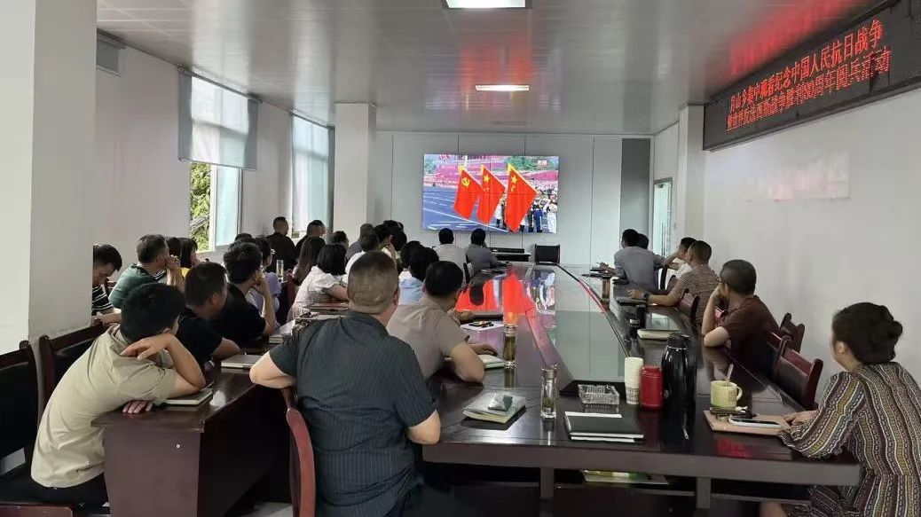 县住建局集中观看纪念中国人民抗日战争暨世界反法西斯战争胜利80周年大会实况直播。