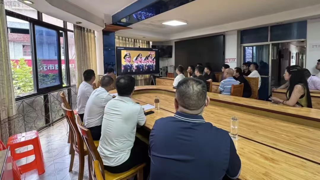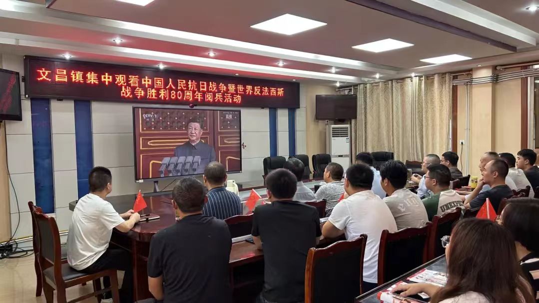 文昌镇集中观看纪念中国人民抗日战争暨世界反法西斯战争胜利80周年大会实况直播。