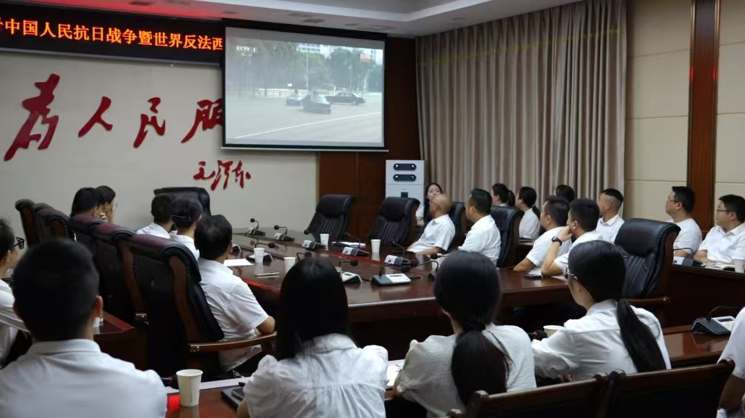 县人民法院集中观看纪念中国人民抗日战争暨世界反法西斯战争胜利80周年大会实况直播。