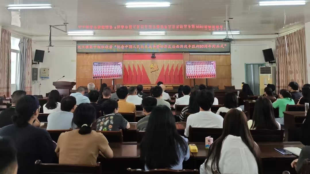 龙王镇集中观看纪念中国人民抗日战争暨世界反法西斯战争胜利80周年大会实况直播。
