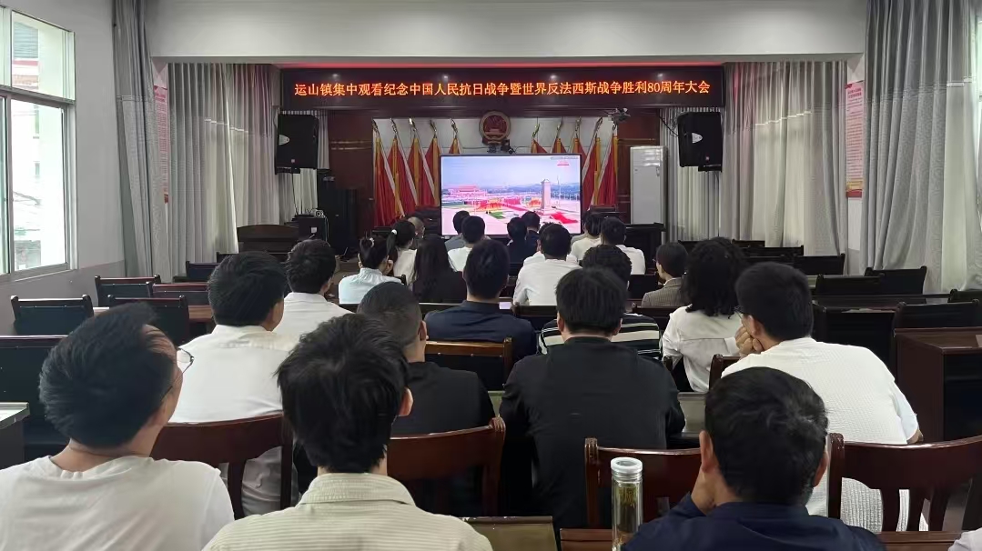运山镇集中观看纪念中国人民抗日战争暨世界反法西斯战争胜利80周年大会实况直播。
