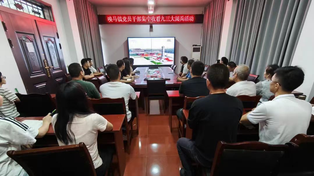 唤马镇集中观看纪念中国人民抗日战争暨世界反法西斯战争胜利80周年大会实况直播。
