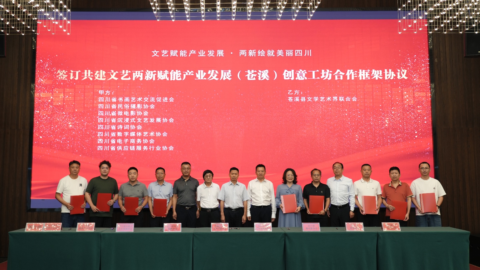 9月26日,共建“文艺两新”赋能产业发展(苍溪)创意工坊签约仪式在苍溪举行,省文联党组副书记王忠臣出席签约仪式并授牌,县委书记袁达成、市文联主席王英荣出席签约仪式并致辞。