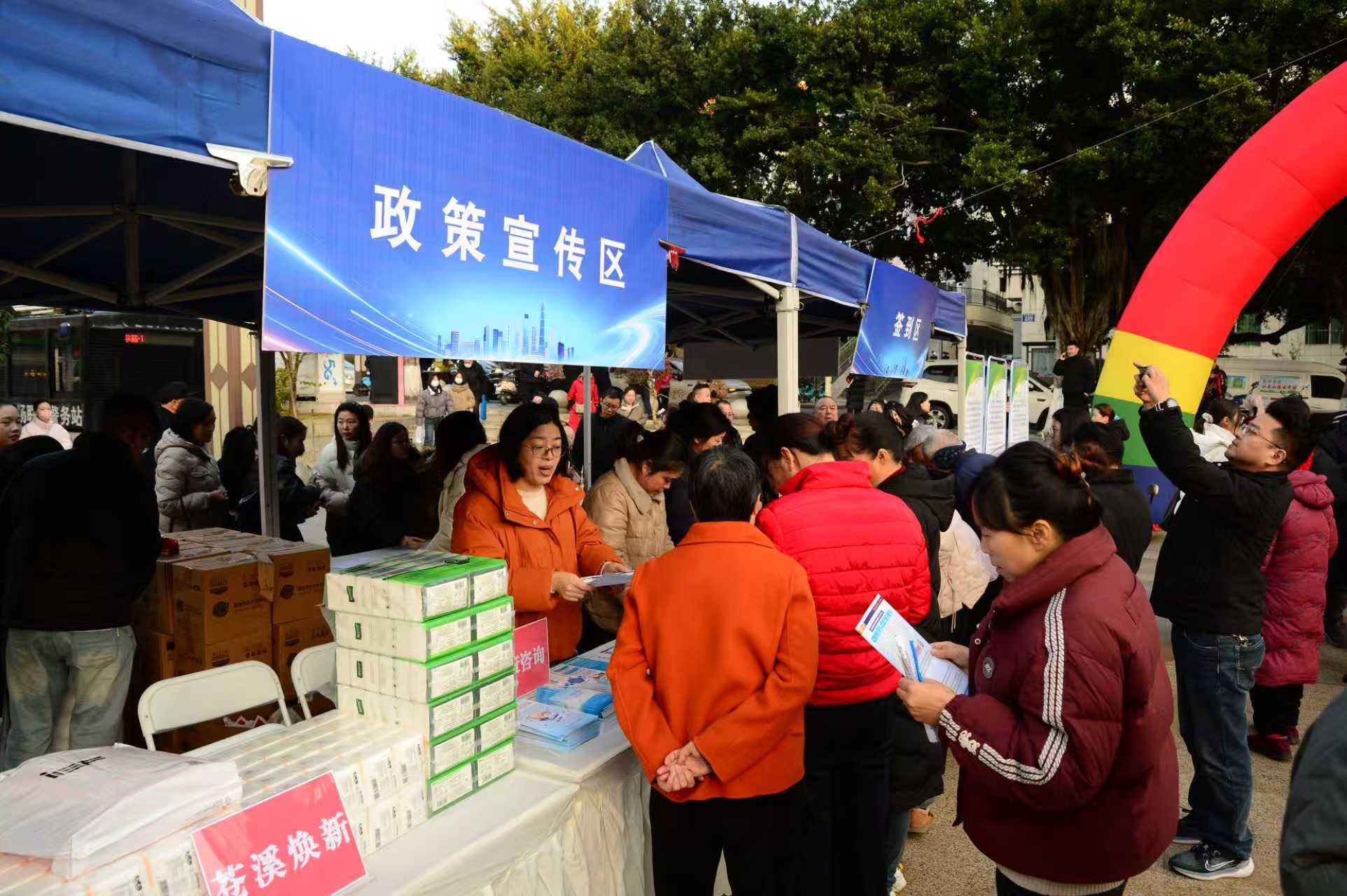 政策惠民服务,稳步筑牢民生“保障根基”。为了让农民工们更好地了解国家和地方针对该群体的各项优惠政策,活动现场专门设置了政策普及宣讲区,县人社局、县农业农村局、县医保局、县退役军人事务局等相关部门工作人员组成政策宣讲团,通过发放宣传资料、现场讲解、案例分析等方式,为农民工详细解读就业创业扶持政策、社会保障政策、劳动权益保障政策等内容。从湖南返乡的农民工邹建聪在听完后感慨地说:“以前对这些政策了解得不多,通过这次宣讲,我清楚了自己能享受哪些优惠政策,以后心里更有底了。”金融惠民服务区同样热闹非凡,多家银行和金融机构在现场设立咨询台,为农民工们提供金融知识普及、贷款咨询、理财规划等服务,工作人员针对农民工创业资金短缺的问题,详细介绍各类创业贷款产品,包括贷款额度、利率、还款方式等信息,并根据实际情况为他们量身定制贷款方案。活动现场还安排了免费健康义诊服务,来自县内多家医院的医护人员们为农民工们提供血压测量、血糖检测、心电图检查等多项基础医疗服务,并针对每个人的身体状况给予专业的健康建议和指导,做到早发现、早治疗,增强他们的健康意识。这一系列贴心、暖心、用心的服务,让现场参与者们切实感受到了党和政府的关怀与牵挂。