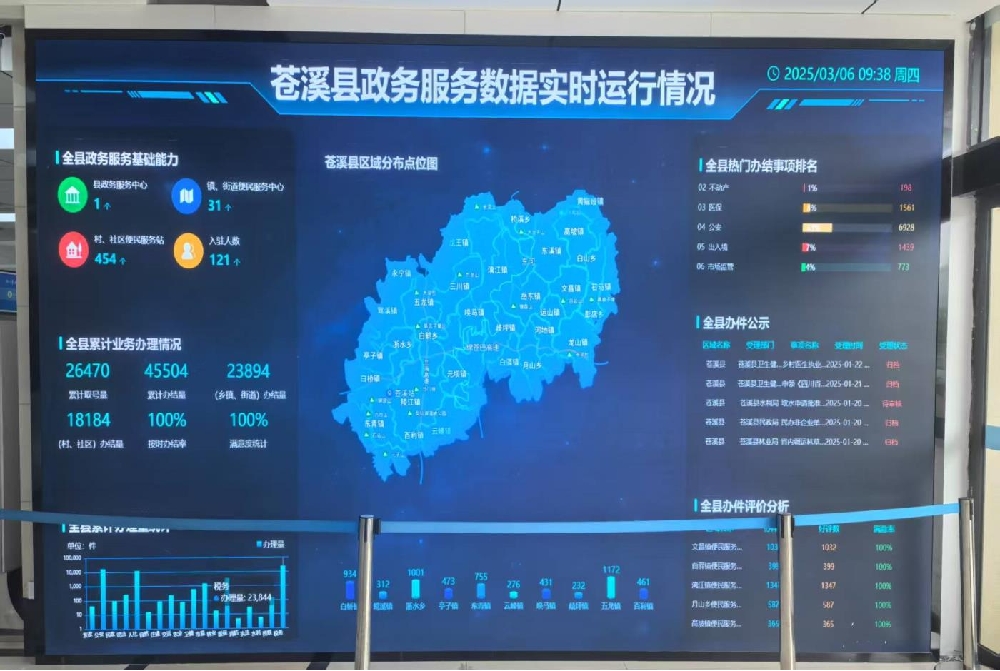 通过数字化转型,苍溪县政务服务实现材料缩减45%、时限压减80%、环节精减50%。全程网办升至98.48%,即办比率升至95.47%。