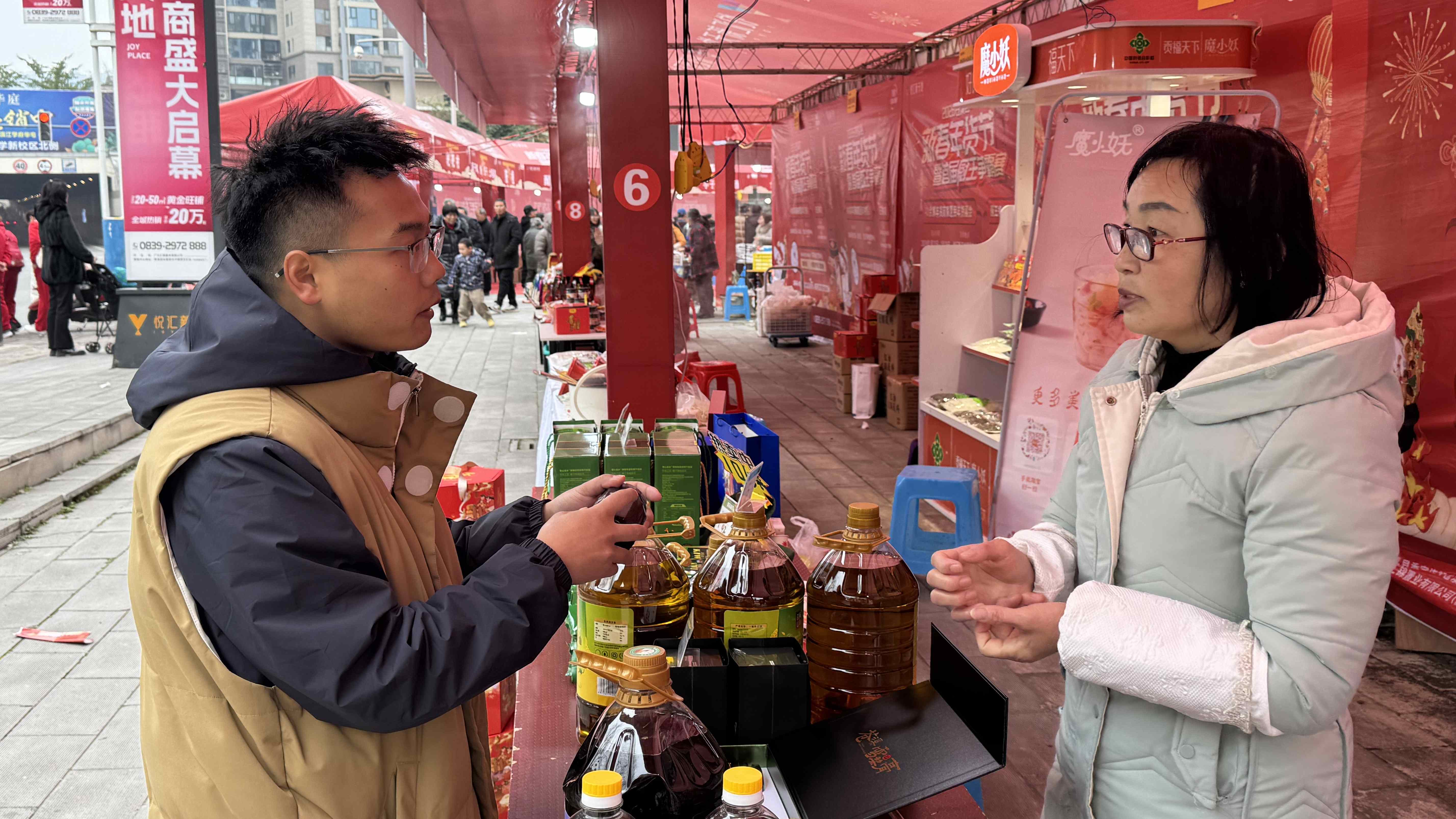 “特别感谢政府搭建这么好的平台,年货节现场人气特别旺,一天下来销量比平时翻了好几倍。我们带来了自家生产的特色农产品,不少市民都是回头客,也收获了很多新客户,特别有成就感。”四川森鲜食品有限公司董事长杨林说。