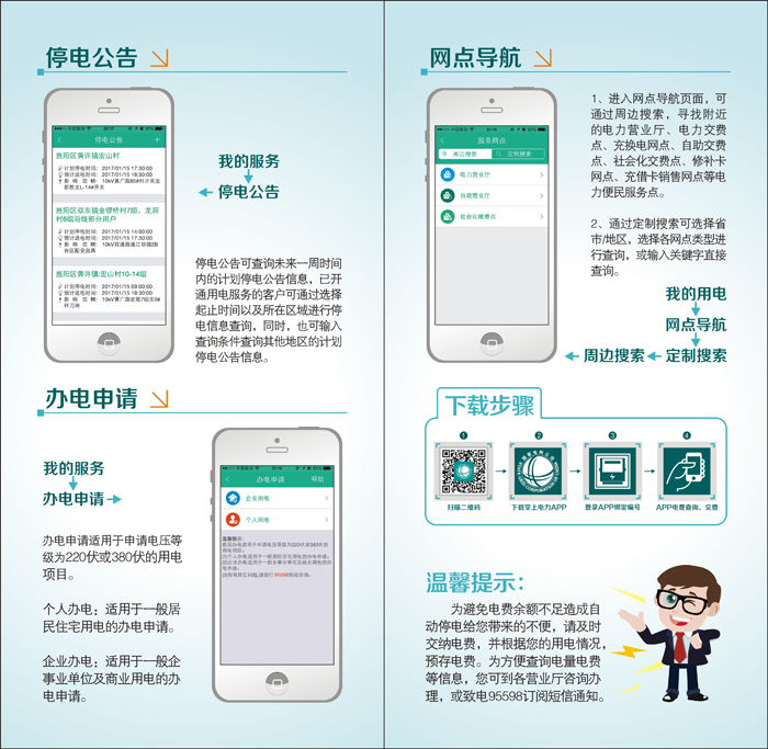 1、“掌上电力APP”自2016年开通应用以来,客户均可自行手机下载,并安装使用,无需到电力公司才能开通,有个别客户由于其手机客户端下载软件不合适,所以会发生下载时出现问题,我们均会安排工作人员为客户进行处理。
