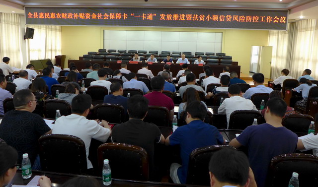 6月14日,我县惠民惠农财政补贴资金社保卡“一卡通”发放工作推进会在县政府七楼会议厅召开。