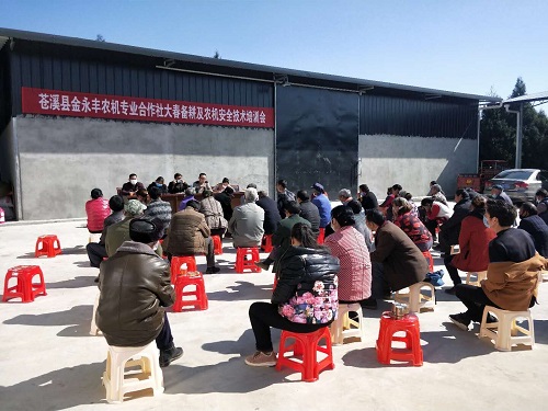 3月4日,永宁镇联合金永丰农机专业合作社在金宝村召开2020年度大春备耕及农机安全技术培训会。会上,分别针对油菜春管、大春早玉米落实、水稻高产如何栽培等几个不同的方面做了系统、全面的技术培训和指导;并对农机安全和农产品质量安全两个方面进行了细致的讲解。此次培训会共有60余名群众参加。