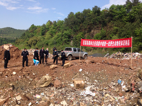 为从源头上切断野生动物疫病传播途径,切实保护野生动物资源,近日,在县纪委监委派驻农业农村局纪检监督组监督下,县林业局联合县森林公安局、县检察院、县市场监管局在五里垃圾填埋场对查获的一批非法野生动物死体及腌腊制品集中进行无害化填埋处理。此次集中销毁的野生动物死体及腌腊制品包括猪獾、野兔、雉鸡等4个品种,共计64只。