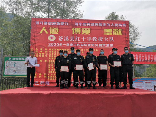 活动中,苍溪红十字救援队对2020年一季度工作做了总结汇报,对疫情防控期间的优秀志愿者进行了表彰,举行了苍溪红十字救援队东溪中队的挂牌仪式。同时对下一步工作开展作出具体要求:一要不断提高思想占位,牢记救援宗旨,尽已所能,服从大局。二要时刻把保卫全县人民生命财产安全放在重要位置,不怕艰险,不辱初心。三要坚持预防为主、防御与救助相结合的方针,加强实战演练,不断提升实战能力,真正把红十字救援队建成一支装备精良、训练有素、作风顽强的民间救援力量。