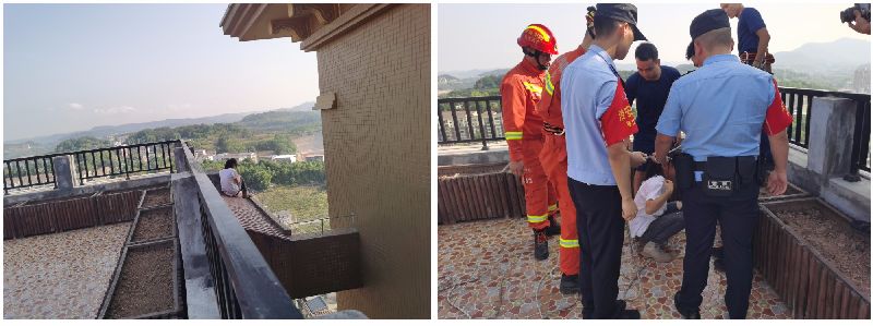6月1日8时许,陵江派出所接县局110指令:在陵江镇某小区34楼有一女子欲跳楼轻生,请处警。接警后,值班民警立即携带救护设备赶赴现场,发现一年轻女子独自坐在楼顶护栏外,情况十分危急。民警立即用耐心的劝导、暖心的言语对冉某展开劝说,最终民警成功打消了冉某轻生的念头,并与消防人员一同将其救下。经了解,冉某因家庭琐事与丈夫发生口角后产生了轻生念头,民警对冉某和其家人提出了批评,告诫他们要妥善处置家庭矛盾,不得采取过激行为。