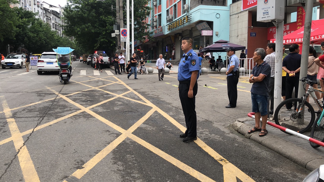 图为执法人员值守苍中校