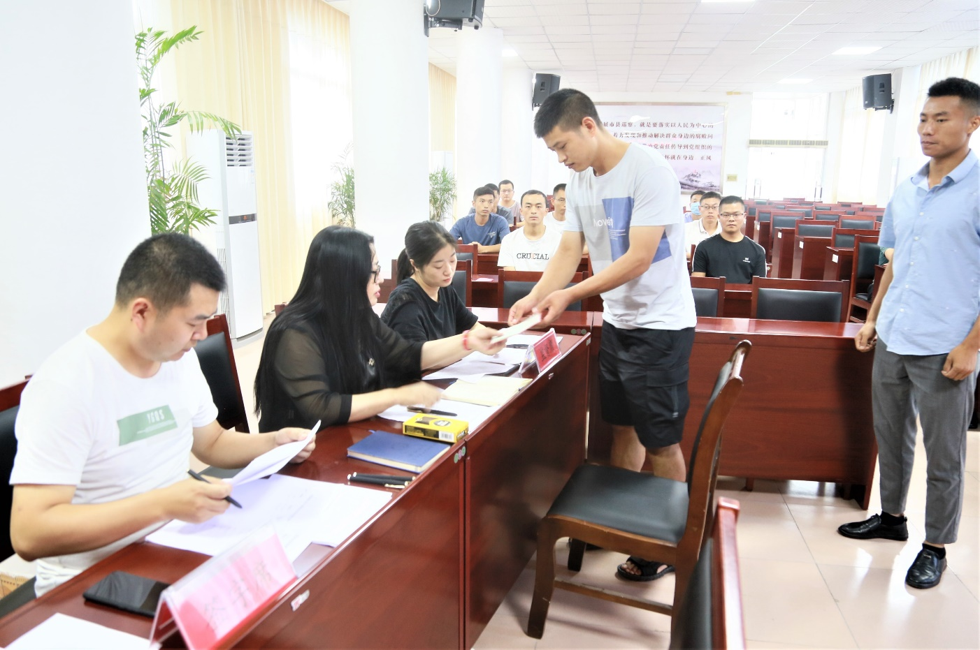选岗仪式上,县退役军人事务局除安排了等额带编事业岗外,还增设了工商银行客服经理1名、中国石油天然气股份有限公司职员2名等工作的企业单位岗位,让转业士官有更大的选择空间,同时邀请了县纪监委、县委编办、县人社局等单位工作人员和拟接收安置单位分管人事领导进行现场全程监督,确保安置过程公平公正、阳光透明。经过公开选岗,15名转业士官被分别安置到县人武部、县人社局、县应急管理局、乡镇综合服务中心等单位。选岗结束后,各用人单位分别与待接收转业士官现场进行了座谈交流,对他们表达了欢迎与激励。