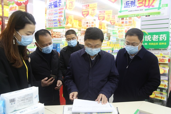 在一心堂解放东路药店,李晋川对药品质量管理、疫情防控、药品价格等方面情况进行了解。他要求,要不断强化企业安全意识、自律意识、诚信意识,持续推进全县零售药店规范化、标准化建设;在新冠肺炎疫情防控上,要充分发挥好零售药店“前哨”作用,有效保障人民群众的生命健康安全。