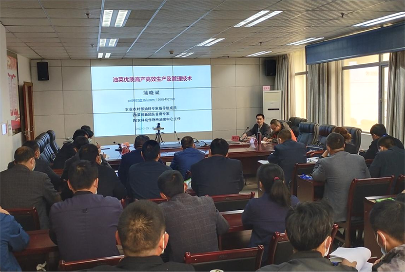29日上午,技术服务团专家们在苍溪县农业农村局会议室召开专题技术培训会,详细了解苍溪县的油菜产业情况,对种植、加工及转化环节的一些问题、疑虑进行了现场解答。服务团首席专家、省农科院作物所研究员蒲晓斌建议苍溪县要结合“天府菜油”系列团体标准的要求,以市场为导向,继续加大高产、优质品种推广,实施轻简化生产与科学施肥结合的技术,生产出满足需求的优质原料。要抓住省委省政府大力实施“天府菜油”的契机,拓展油菜产业“菜、花、油、蜜、肥、饲”多功能利用途径,合理布局全产业链的循环经济发展模式,延长产业链,提升价值链,切实为当地经济发展作出贡献,带动农民增收、企业增效,共同推进“天府菜油”高质量发展。