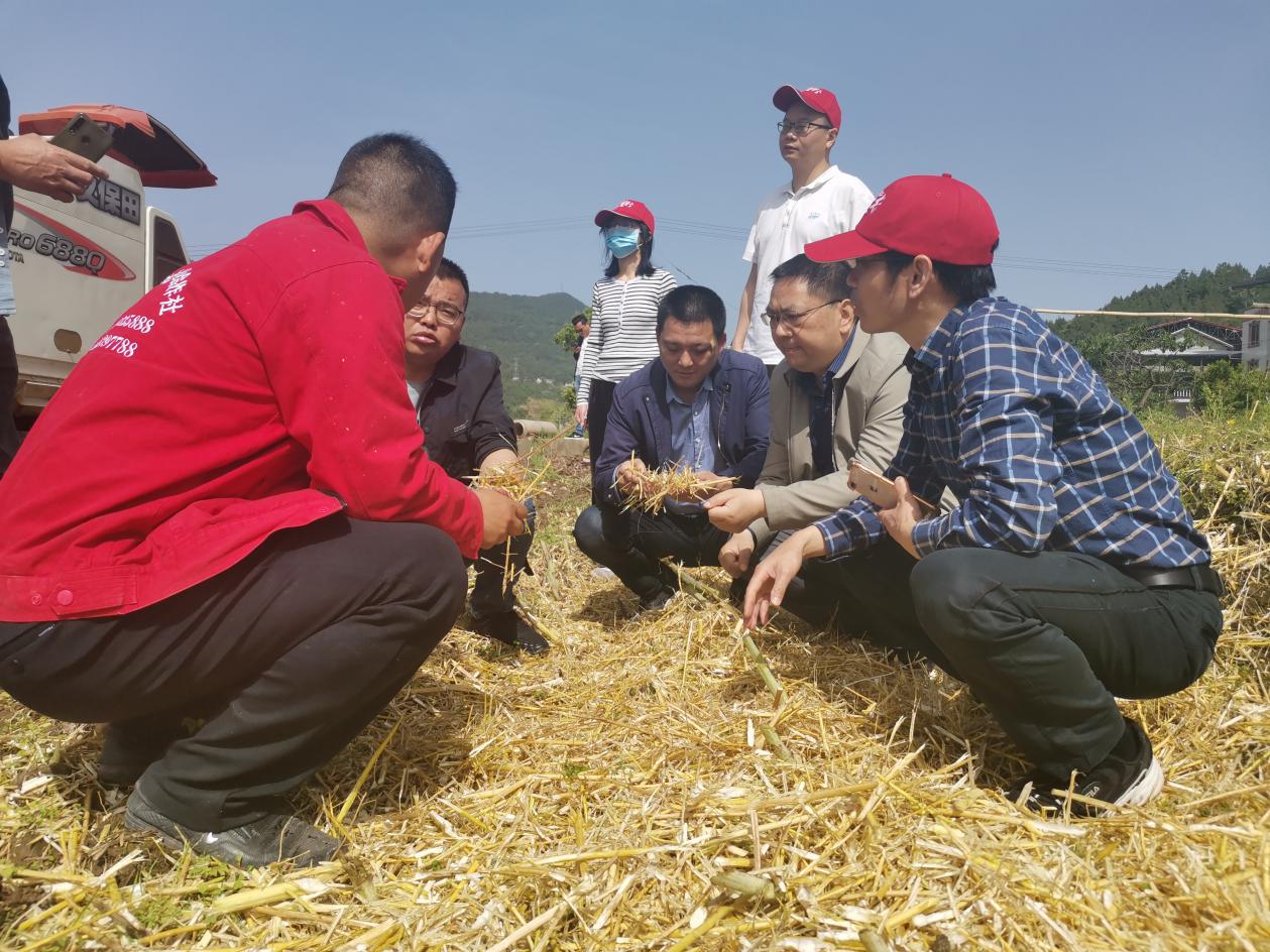 服务团深入元坝镇裕华村和云峰镇响水村,现场对油菜产量进行田间调查分析,观看了油菜分段机收,听取了苍溪县金飞阳种植专业合作社、苍溪县兴达绿源种植专业合作社等新型农业生产经营主体和县、乡镇农业技术人员对油菜产业发展的想法,充分肯定了我县在运用现代农机科技装备发展油菜产业方面的做法,并指出要小春一季安排全年,在油菜品种选择、高产栽培技术应用、全程社会化服务、种植大户培育等方面下功夫,做大做实油菜产业。服务团还对菵草、菌核病科学防控进行现场技术指导。