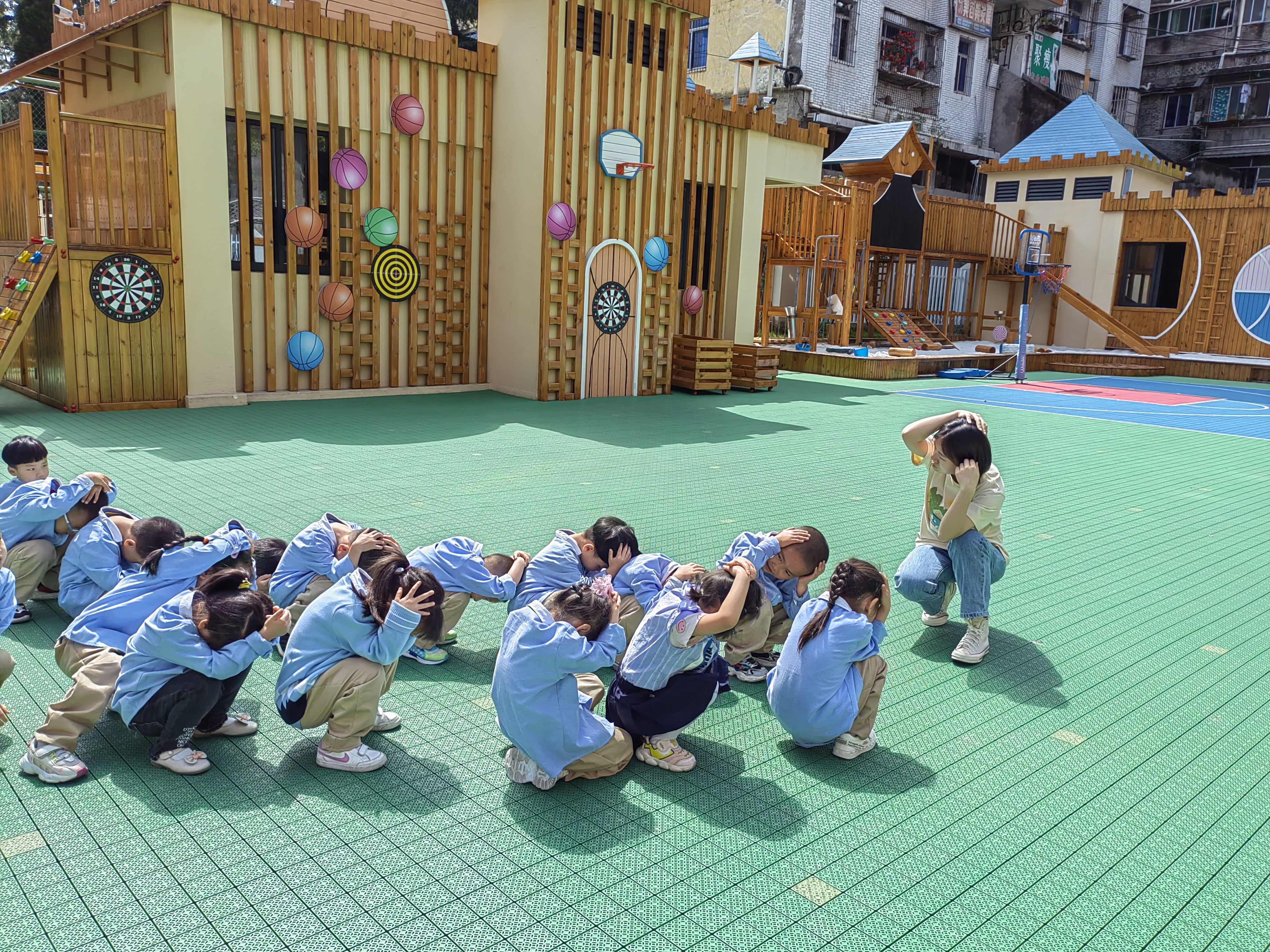 随着警报声响起,教师马上组织幼儿,迅速蜷曲身体、护住头部,就近躲避到桌下、安全角落,1分钟后,疏散声响起,教师立即组织幼儿排队,用手抱头、弯腰低身、沿预定路线,快速有序地撤离教室。到达安全地点后,各班教师清点并上报幼儿人数,最后主持人对本次防震疏散演练的目的、过程中存在的问题进行了全面讲述与总结。整个演练活动用时共计2分30秒,演练过程紧张有序,有条不紊,增强了师生应对突发事故的处理能力。(李咏仪)