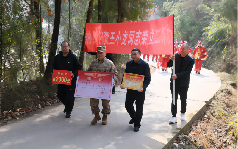 守卫海疆功卓著,喜报频传耀家乡。2月6日,伴随着喜悦的锣鼓声,苍溪县人武部政委李平,县退役军人事务局党组书记、局长刘开俊一行专程来到白驿镇谯坝村,为荣立二等功的戍疆卫士王小龙家庭送去立功喜报和慰问金,并表示热烈祝贺和美好祝福。这已是王小龙连续两年斩获二等功殊荣。
