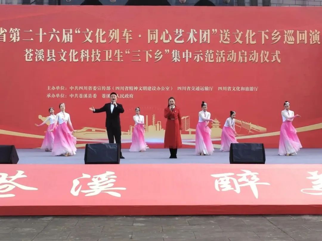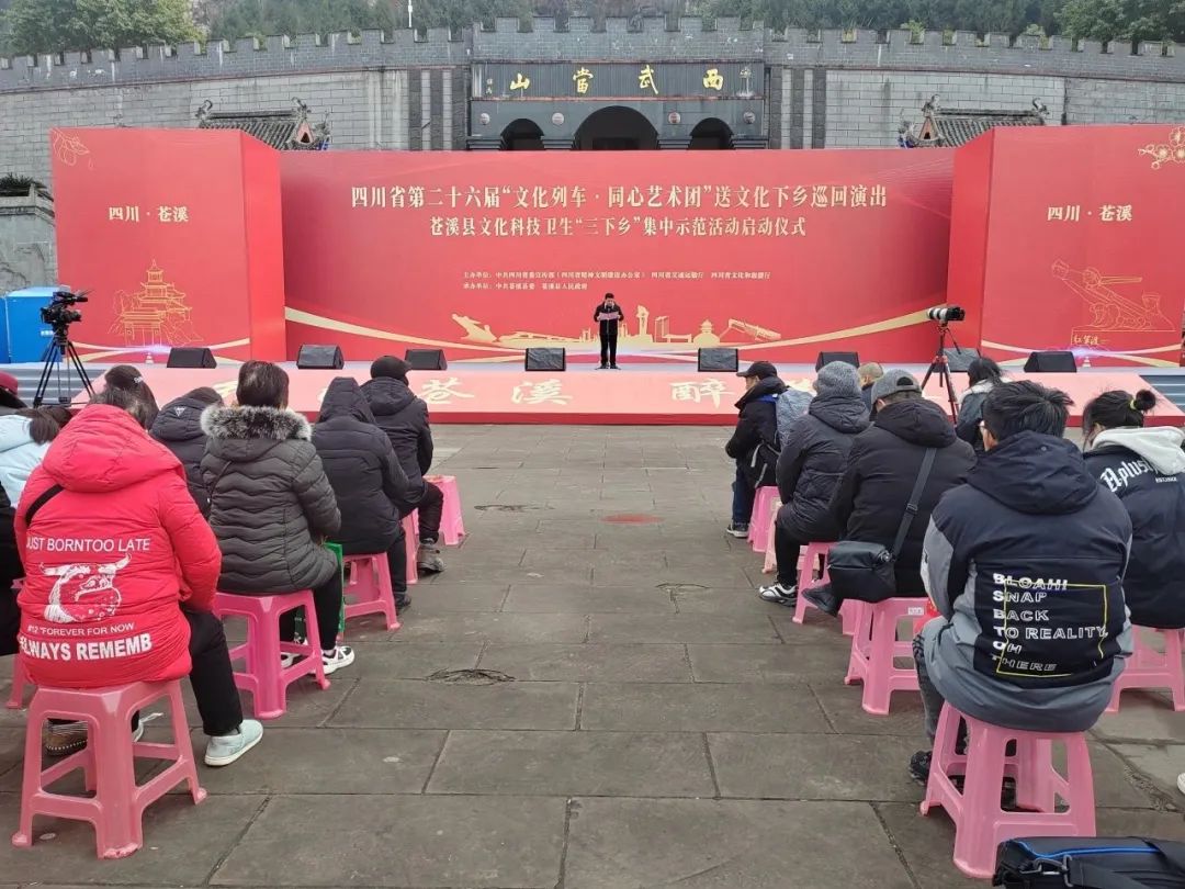 1月25日,四川省第二十六届“文化列车·同心艺术团”送文化下乡巡回演出暨苍溪县文化科技卫生“三下乡”集中示范活动启动仪式在县城玄武广场举行,省委宣传部宣传教育处处长王军,省文化和旅游厅艺术处一级主任科员徐豪,省曲艺研究院院长沈军,省曲艺研究院副院长潘薇,市委宣传部副部长、市文明办主任王英荣出席活动,县委副书记、县长任云出席活动并致辞。