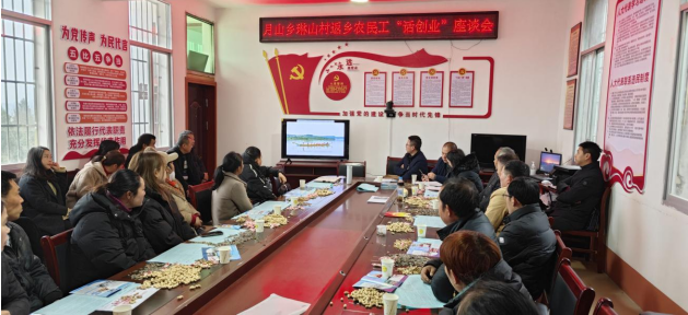 图为:月山乡烟峰山村开展“聊家常、话创业”返乡农民工座谈会