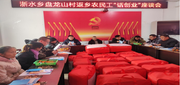 图为:浙水乡盘龙山村召开农民工“话创业”座谈会