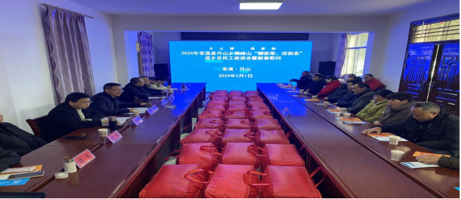 图为:在月山乡琳山村召开返乡农民工“话创业”座谈会
