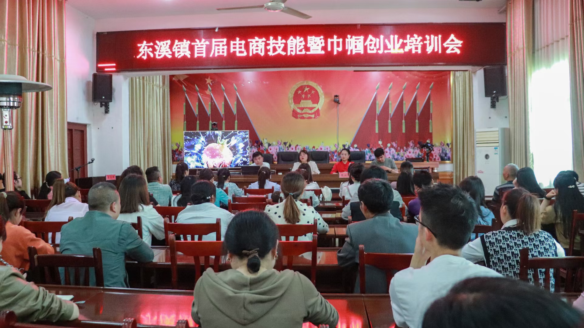 4月27日,东溪镇举办首届电商技能暨巾帼创业培训会,组织电商带头人、各村(社区)电商爱好者等50余人参会。