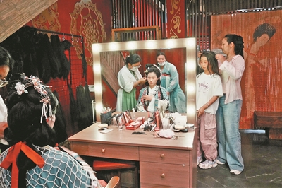 一本手册,游客“受宠”,商家获益。在云裳洛城汉服店,店长张蓝的账本记得清楚:妆造抵扣30元、摄影打八五折,4月加入手册活动后,顾客比上月多了近三成。“我们开业不久,最需要的就是客流量。”张蓝说,30平方米的小店,每天到店有50多人,3名妆造师常常忙得不可开交。