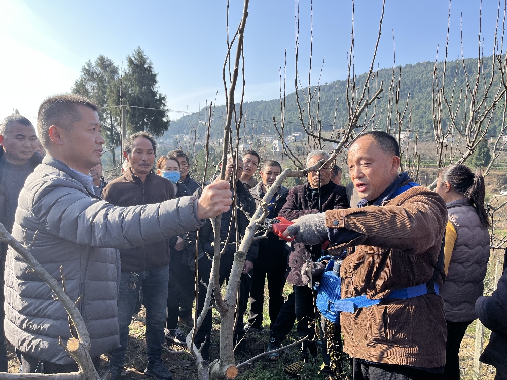 时值寒冬,正是苍溪梨冬季管护的关键时期。12月25日上午,运山镇在龙井村三组举办了2025年“苍溪梨”冬季管理技术培训会,特邀省农科院专家、县农业农村局技术骨干现场授课指导。镇农业综合服务中心全体干部、各村(社区)常职干部、新型经营主体业主、苍溪梨种植大户等100余人齐聚田间课堂,学习苍溪梨冬季管护关键技术,为来年苍溪梨丰产优产筑牢技术根基。