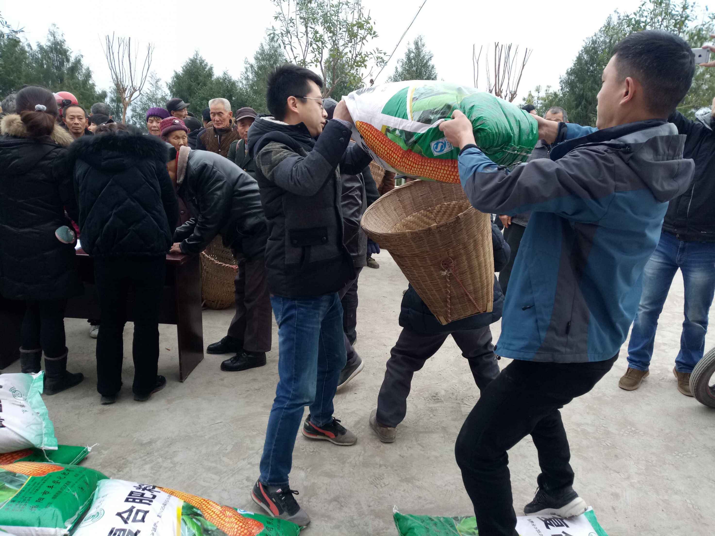 图为,县国土资源局帮扶干部在白驿镇檬桠村为村民送化肥