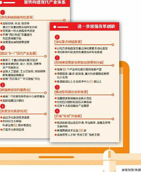 服务业发展,只是产业结构优化升级的一个侧面。推动“5+1”现代产业发展,也是报告强调的今年重点工作之一。多位代表委员注意到报告中“落实”“抓好”“聚焦”“优化”等关键词。杨羽特别关注报告中“加强人工智能、工业互联网、物联网等新型基础设施建设,加快5G商用步伐”,“这表明围绕构建‘5+1’现代产业体系,抓住了重点,在切实推进;这些新的基础设施,将为四川新一轮发展奠定良好产业基础。”