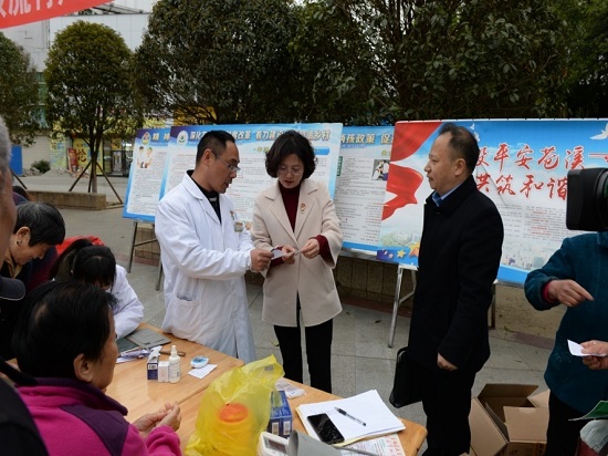 现场活动结束后,杨梅带领重传委相关单位负责人一起到县人民医院江南分院看望慰问了贫困肺结核患者。她鼓励患者要坚定信心,坚持治疗,争取早日康复。同时还勉励医务人员要再接再厉,进一步提升全县结核病防治工作水平。