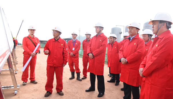 图为,邹自景一行在中石油九龙山净化厂调研。