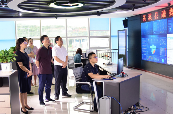 图为,省委外宣办、省政府新闻办副主任代光举一行在县融媒体中心指挥调度中心调研。