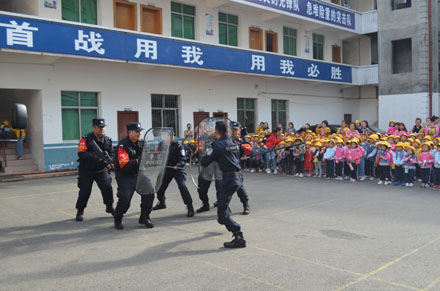 活动中,特警队员首先为孩子们展示了嫌疑人抓捕模拟演示、擒拿格斗演练,以及警犬训练等日常训练展示,并通过浅显易懂的语言,向小朋友们普及了自我避免危险等安全知识。随后,特警队员带领小朋友们参观了各式警用盾牌、防抢夺抓捕棍、臂盾、防暴服、防暴头盔等警用器械。通过参观活动,不仅拉近了警民距离,让孩子们了解警察这一职业,感受到人民警察正气与正义,更懂得了遵纪守法的重要性,同时增强了他们自身安全防范意识。