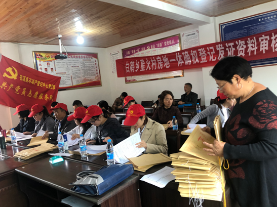 为方便村民办理农村房地一体确权登记,近日,县不动产登记中心组织全体党员干部到白鹤乡星火村开展农村房地一体确权登记工作上门服务。在星火村村委会宣讲相关政策、提供咨询服务,现场受理登记申请,当天为全村150户农户的资料进行了现场审核,并为资料合格的28户农户现场办理了不动产登记手续,让老百姓在家门口就拿到了不动产权证书。