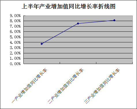 据上级统计部门审定,上半年,苍溪县实现生产总值77.94亿元,同比增长7.0%,增速比一季度提高0.2个百分点。分产业看:一产业增加值15.63亿元,增长3.7%;二产业增加值33.42亿元,增长7.5%;三产业增加值28.89亿元,增长8.1%。三次产业拉动GDP分别增长0.7 、3.6和2.7个百分点,三次产业贡献率分别为9.8%、51.8%和38.4%。