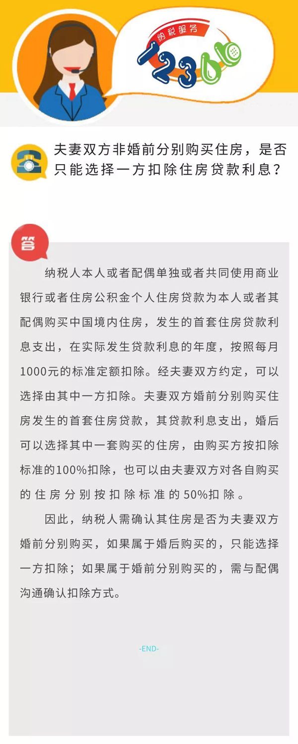 税收知识:夫妻双方非婚前分别购买住房,是否只能选择一方扣除住房贷款利息?