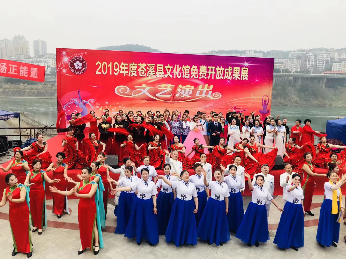 12月30日下午,“2019年度苍溪县文化馆免费开放成果展文艺汇演”在县城滨江路下沉式广场举行。整个展演活动包括了歌曲演唱、舞蹈、器乐、合唱、小品、书画展,都是学员们自编自演的作品,气氛热烈快乐。