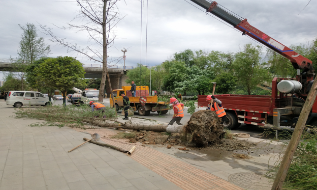 近日突发大风天气,县城区多处发生树木折断、倒伏等情况,县住建局县园林绿化事务中心迅速进行全城排查,出动园林绿化工人20余名,5辆园林车辆进行紧急抢险,对因大风造成断裂坠落的树枝集中清理,排除安全隐患,确保道路畅通和行人出行安全。
