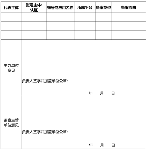 政府系统政务新媒体备案表