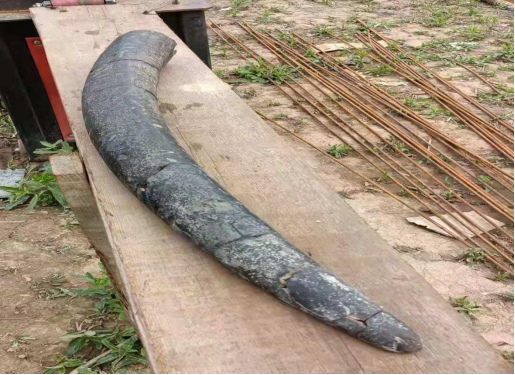 弃渣场防护工程施工中发现的门齿化石,长106cm