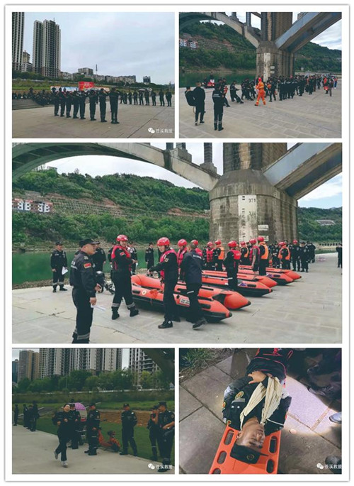 启动仪式结束后,进行了水域有动力及无动力操舟、翻船自救、水域200米紧急救援、紧急医疗运输、野外夜间找点救人、炊事班展开与撤收等10个特设项目的PK。参赛选手同台竞技展示风采,较好地展现了团队合作与应急救援实战能力,也检验了我县红十字救援队的应急救护水平。
