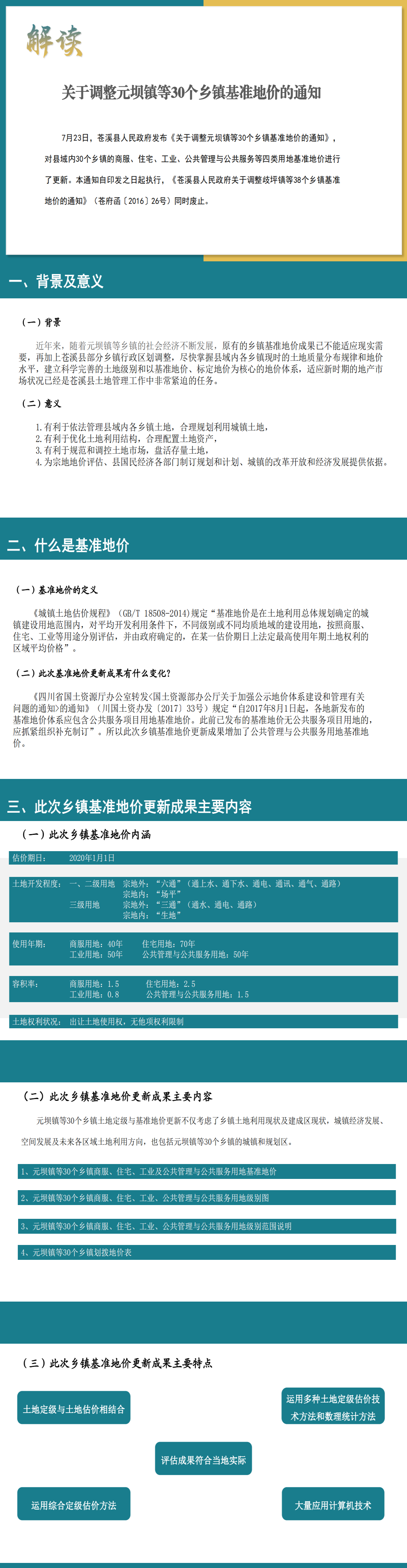 图解:苍溪县人民政府关于调整元坝镇等30个乡镇基准地价的通知