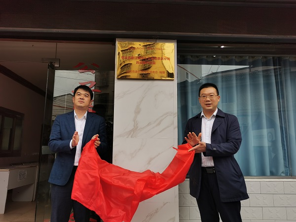 图为,刘俊峰、陆洪辉共同为陵江镇中心卫生院茶店分院改造项目揭牌。