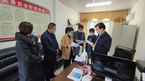 图为,卢春刚在黄猫垭社区居委会详细了解疫情防控工作的开展情况。